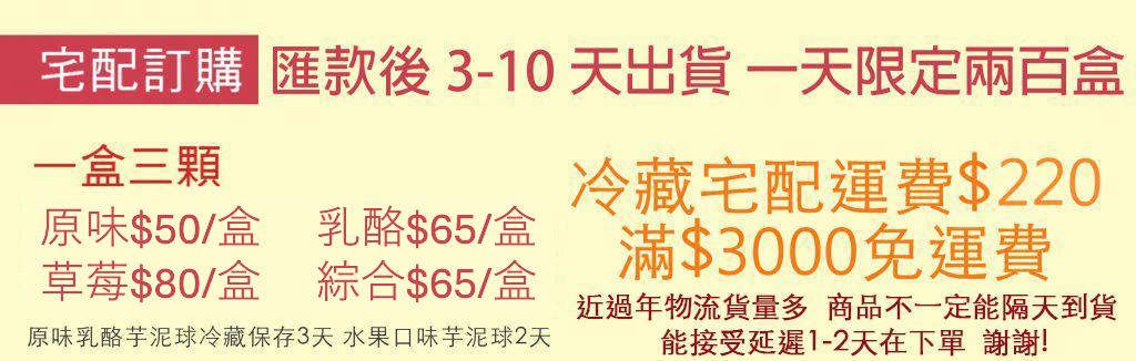 Home – Classic 推薦商品 【期間限定】雙果鳳梨酥 NT$350 【季節限定】黃金奇異果芋泥球 NT$55 【季節限定】草莓芋泥球 NT$80 特價 【新品上市】流沙芋泥球 NT$65 原始價格:NT$65。NT$60目前價格:NT$60。 塑膠提袋加購 NT$1 【季節限定】芒果芋泥球 NT$55 部落客推薦